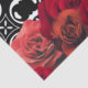 Elegant floral tissue paper design featuring red roses on a black and white geometric pattern.