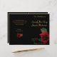Red Roses on sophisticated gold and black wedding program flyer at www.zazzle.co.uk/datesdujour. This wedding program flyer is designed to be folded in half thus making 4 pages with the Wedding Ceremony and Wedding Party details in the inside on pages 2 & 3. Buy direct for the best bargains.