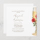 Red Roses on Champagne Shower bridal shower invitation. Name in red modern script. Gold text. Watercolor image. Red bridal shower. Red roses shower. White background.