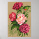 vintage art with painting of beautiful natural red and pink roses with a rose bud, green leaves and fern.