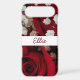 Red Roses photo with monogram name across the middle in white banner. Romantic photography captures imagery of elegance and love.