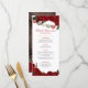 Ruby red roses with gold accents and papel picado bunting banner, in a menu design to match many of the quinceanera and western cowboy/cowgirl charro/charra themed invitations in the shop. Can be customised to fit your occasions and for your needs.
