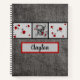 This fun notebook has a faux black jean fabric background and a panel of a black skull drawing and red roses near the top. Back is solid jean fabric. Check out the store for other skull and roses coordinating items like binders, folders and more!