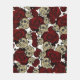 Red Roses & Skulls Black Floral Gothic White Fleece Blanket