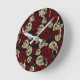 Red Roses & Skulls Grey Black Floral Gothic Round Clock