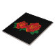 Two red roses in a backdrop of black all drawn in a traditional tattoo style.