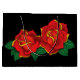 Two red roses in a backdrop of black in a traditional tattoo style.