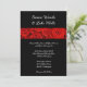 This romantic classic wedding invitation is shown in a black colour with lovely red roses with formal written layout and text in a script highlighting the names of the Bride and Groom.