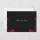 A timeless design featuring elegant white lettering and vibrant red roses set against a classic black backdrop.