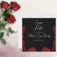 A timeless design featuring elegant white lettering and vibrant red roses set against a classic black backdrop.