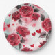 Red Roses with Hearts Pattern Romantic Paper Plate