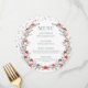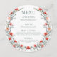 Immerse yourself in vibrant elegance with our rustic spring/summer wedding menu card. Adorned with a wreath of red rose flower wreath and delicate dusty green text, it adds the perfect touch to elevate your dining experience. Explore our selection for a seasonally inspired addition to your celebration.