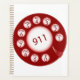 Stay organized and stylish with this spiral planner featuring the vintage red rotary phone dial graphic on the cover. The nostalgic design, centered on the 911 emergency number, is perfect for those who appreciate retro and old fashioned aesthetics. This planner provides a great way to track appointments and schedules while celebrating historical communication devices. Make planning fun with this unique, attention-getting cover design.