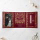 Announce your wedding in style with this mediaeval fantasy tri-fold invitation! This invite features a majestic gold sword and florals, with a special photo of the couple against a red background—the perfect mix of romance and adventure. NOTE: This design does NOT feature real foil. The placeholder image was provided by Unsplash and is NOT for sale; replace it with your photo.
