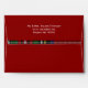 Lovely custom Christmas envelope done in red, with the colourful traditional red, green, blue, white, and yellow Royal Stewart tartan pattern, on the inside of the envelope and as a thin border, on the back flap. White custom script text return address, on the back flap, is ready to personalise. Perfect addition to our Royal Stewart plaid Christmas photo greeting card set.
