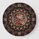 Custom Art Wall Clock : Unique design in deep red, gold and black. This unique alternative design is inspired by Arabesque and Geometric style fusion with Arab phrase Bismillah in Arabic calligraphy in the centre, for daily Muslim blessings at home or office .