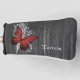 Create a unique golf gift with a Red Rustic Butterfly Personalised Golf Head Cover. Cover design features a butterfly against a white leaf vine and dark grey wooden background with a place to personalise with your name. Additional items available with this design as well. Please contact me directly for assistance with personalisation.