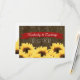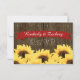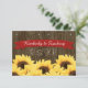 A SUNFLOWER RSVP CARD WITH COUNTRY CHARM AND A RUSTIC FEEL WITH A WOOD GRAIN WOODEN FENCE OR BARREL LOOK DESIGN AND A NAIL HEAD TRIM. ADD THE NAMES OF THE BRIDE AND GROOM ON THE RED PRINTED RIBBON LOOK BANNER. A BOUQUET OF GOLDEN YELLOW SUNFLOWERS HAVE A VINTAGE AND PAINTERLY LOOK. PERFECT FOR A WEDDING ANNIVERSARY ENGAGEMENT BIRTHDAY OR ANY SPECIAL OCCASION PARTY WITH A BARNYARD BARN OR FARMHOUSE THEME. DESIGN © CHRISSY H. STUDIOS, LLC. ALL RIGHTS RESERVED.