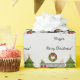 Destei's original cartoon illustration of a red sable coat colour Papillon breed dog. The dog is placed in a festive room that has a fireplace and a lot of Christmas decorations including a green Christmas tree, some red stockings and a wreath with a red bow on it. There is also a personalizable text area that now reads: "Merry Christmas!" and another personalizable text area for a name.