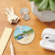 Destei's original cartoon illustration of a red sable coat colour Papillon breed dog with some canine agility equipment. There is a green and yellow colour A-frame obstacle, a blue tunnel, some red and white striped weave poles and an orange colour tire jump. There is also a personalizable text area for a name or other custom text.