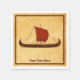 A Viking long ship with a red sail seen in profile from the right side and superimposed on an old paper background image. Customise by adding your own text. You may change both the text font and colour. You may also change the colour of the border or remove it altogether.