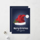Red Santa Hat With Christmas Holly On Blue Holiday Card