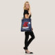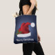 Red Santa Hat With Christmas Holly On Blue Tote Bag