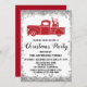 Red Santa Truck Holiday Christmas Party Silver Invitation