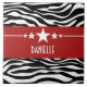 Trendy and modern Sassy Star Zebra Tile featuring a chic black and white zebra print background and a bold red border adorned with a fun star motif. This girly design may be customised with the personalised text of your choosing. Click "Customise It" to find more personalisation options.