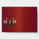 Red satin envelope with a black wrought iron chandelier complete with lit candles. Return address is on back flap. Chandelier can be moved, resized, and copied to the back or inside.