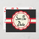 Red Save The Date Black & White Polka Dot Postcard