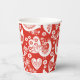 NewParkLane - Christmas Paper Cups, with a traditional, intricate Scandinavian Christmas Pattern of flowers, hearts, birds, and Christmas ornaments in red and white.