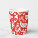 Red Scandinavian Christmas Pattern with Birds Paper Cups
