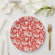 Red Scandinavian Christmas Pattern with Birds Paper Plate