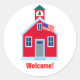 Red school house. Replace placeholder text to personalise. Background colour can be changed.