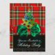 RED SCOTTISH TARTAN ,GREEN BOW AND CHRISTMAS TREE INVITATION