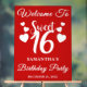 This christmas sweet 16 birthday party welcome sign features a cute red handwritten Script font and modern minimalist design. This welcome sign is perfect for minimal themed birthday party or can be used for any other event.