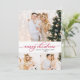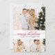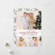 Modern Winter Foliage Greenery Elegant Red Calligraphy Script 3 Photo Collage Christmas Cards. This festive, minimalist, three (3) photo holiday greeting card features a pretty photo collage, „Merry Christmas” greeting text which is written in a cursive hand lettered font type in red. On the back side watercolor winter botanical greenery foliage, eucalyptus leaves, berries, pine needles and branches. Pretty greeting card for your family and friends in Winter Holiday season.