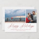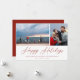 Festive Modern Minimalist, red calligraphy script "Happy Holidays" with solid red backing, 2 photo Christmas card.