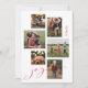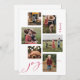 This fun holiday card features a clean white background with the handwritten word "Joy" in red accenting 6 photos in a mix of vertical, horizontal, and square formats for maximum versatility. The back has space for an additional photo and longer holiday greeting.