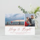 Festive Modern Minimalist, red calligraphy script "Merry & Bright" with solid red backing, 2 photo Christmas card.