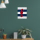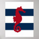 Red Seahorse on navy & white stripes print poster