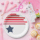 Bring creativity and personal flair to your 4th of July festivities with our customisable disposable paper plates. Featuring different shades of red running in from one side as rounded rectangles and a medium-sized blue star on one side, these plates offer plenty of blank space for personalisation. Perfect for serving your favourite holiday dishes at Independence Day parties, BBQs, picnics, and any patriotic event, these durable plates make your celebration uniquely yours while ensuring an easy cleanup.