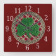 Red Shamrock And Celtic Knots Square Clock