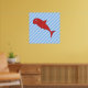 A red shark cartoon on blue stripes. A fun animal cartoon design.
