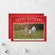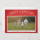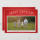 Elegant typography with swirled flourishes on a red background of shining rays frame a favourite holiday photo. Space on the back has room for additional photos or more holiday messages.