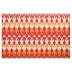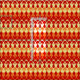A grid point concave pattern consisting of yellow and orange arrows, in the fill space are hexagon and spaceships in red.