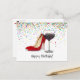 Celebrate any occasion with Red Shoes and Red Wine. A simple but elegant design featuring a pair of red high heels and a glass of red wine with a sprinkle of rainbow coloured confetti. Shown here with Happy Birthday, you can customise the text for an anniversary, thank you, thinking of you or Mother's Day. Postcards can be mailed as is. There’s an area, in the upper-left corner for the return address and ruled lines for the address. You can also remove the templates and add your message. Envelopes (sold separately) are available for mailing.