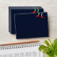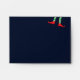 This dark blue envelope has a simple, funny design with elf legs wearing green & white striped tights and red elf shoes, with tiny jingle bells on the front and a bright, fun, festive, red on the inside.