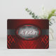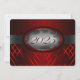 Red and silver graduation invitation with light and dark red stripes and a silver ribbon going across showing the year of graduation. The back of the card is red with light silver font for people to fill in the graduation party invitations.